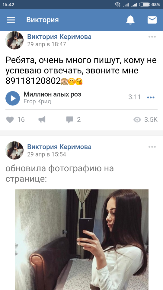 Сразу напишу, что фото которые на странице и присылает в личку , не ее .