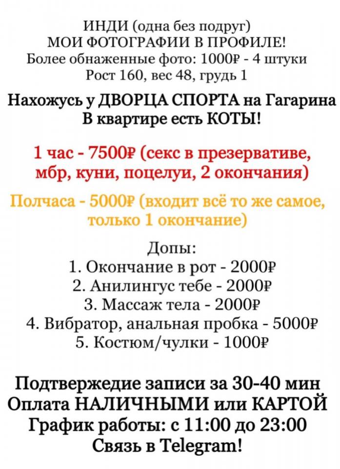 Был у нее весной. Связь через телегу без проблем. Зашел в хату, сразу сказал, что куни-хуюни это не мое, давай без этого. Отдал 6к (хотя тут тупанул, можно было по идее за 5к тогда договориться, но я не опытный ходок). Дальше чистое полотенце, душ. Душ закончил принимать, только выключил воду, не успел из ванны выйти - входит в дверь и начинает эти свои приколы, которые ранее описывали ходоки. Был к зеркалу приклеен здоровенный дилдо, размером с полено, говорит типа это приветствие такое, надо тебя им отшлепать. Я говорю сейчас сам тебя отшлепаю своим членом, еле увернулся от этой хуевины резиновой, чуть ли не заломал ее руки и повел в спальню ближе к траходрому. Квартира и комната чистые, свежий ремонт, кругом шныряют кошки, но они никак в процессе коитуса не участвовали, если что) Кровать большая, напротив стоит шкаф с зеркальными дверцами, и можно любоваться еще в них, как ее жаришь)) Лег на кровать, она несколько раз пыталась запрыгнуть мне на лицо, чтоб куни сделал)) Успешно отбил все ее атаки и отправил ее ебанутую голову в область моего хуя)) Побрызгала мирамистином член и принялась за минет. МБР очень хорош по мне, один из лучших за мою жизнь, берет глубоко, яйца вылизывает, в глаза смотрит.