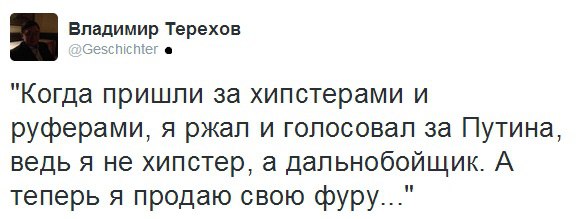 То есть они абсолютно иначе, чем люди из Правительства и подавляющее количество людей на форуме, воспринимают затею с 24 летним бенефициаром, получившим 27 млрд., и т.д . и т.п. Также, потуги людей из Правительства, выставить их перед обывателями -"плохим, жадными, наносящими вред"- не увеличили симпатий ни к ПЛАТОНУ, ни к людям из Правительства.. Но если для Тетриса и Рыбного подобное непонимание вполне понятно, то для людей из Правительства - не очень. Они конкретно показали большому количеству ватников и совков, - ну вполне понятно - чего они показали.