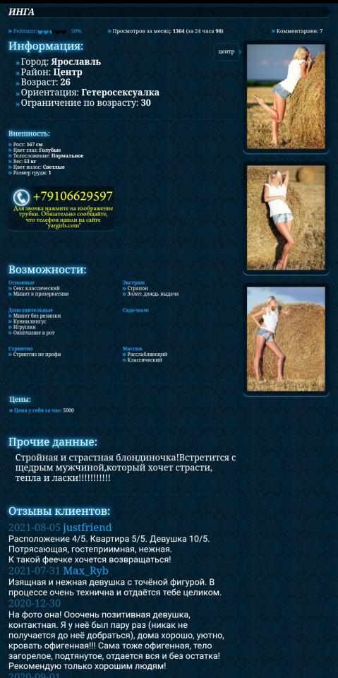 Попадаются в телеге отзывы гостей о питерских феях,так завидки берут. Что там феи за те же деньги что и у нас с гостями только не делают! А в Ярославле? Самое увлекательное-игра в Штирлица в начале процесса,а потом? Душ,скрипучая кровать,вокзал. Ни:"До свидания!",ни "Пока!". А уж о:"Приходи ещё!" и мечтать не приходится...