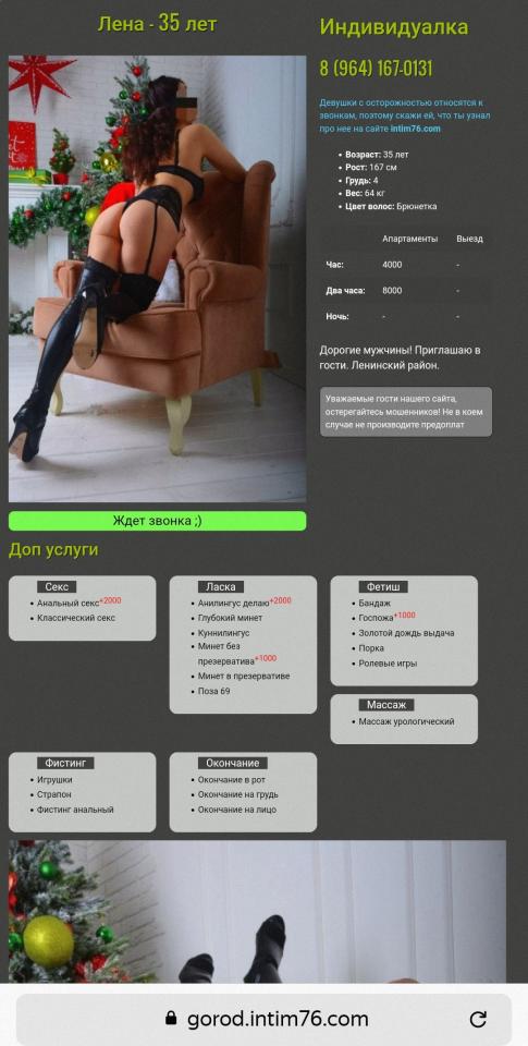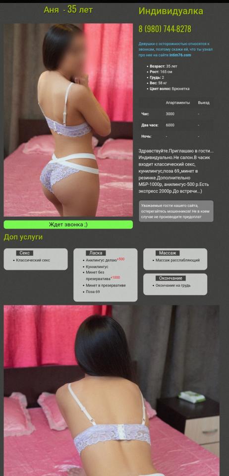 Не открывается ссылка --- если эта про которую ивановский номер была --- это не она видимо украли ее фотки , у той такого списка услуг никогда не было !!!