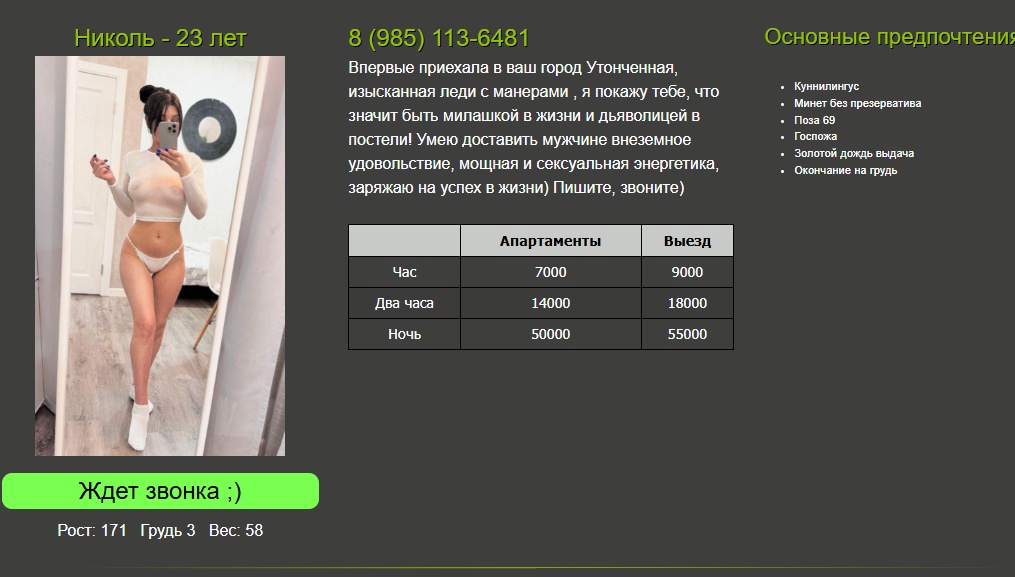 Николь, 8-985-113-64-81,