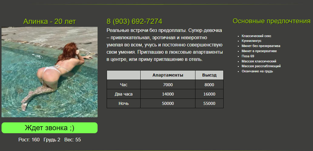 ), любые позы, ни в чем отказано не было. В общем рекомендую, мне даже хочется вернуться еще, хотя такое бывает редко по опыту.