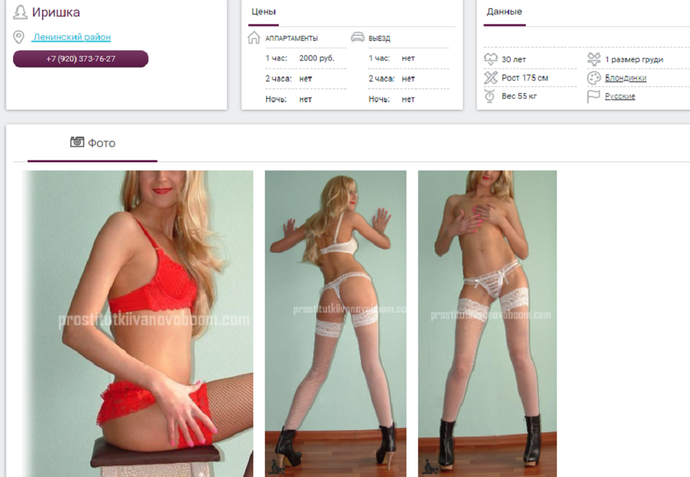 В анкете все фото её. В другой https://yarrelax.net/catalog/1/739.htm (например в этой тоже все её фото!), причем те, которые сделаны в кв - в этой кв она и принимает и фото на кровате - это местоИмения, в этой же кв.