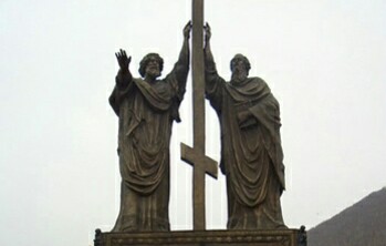 Ну и в центре Аллеи памятник на основе Петропавловско Камчатского памятника святым апостолам Петру и Павлу (см фото) памятник Нимбу и Агнцу с мемориальной доской со словами из подписи Бороды