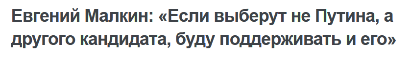 Евгений Малкин: "Если выберут не Путина, а другого кандидата, буду поддерживать и его".