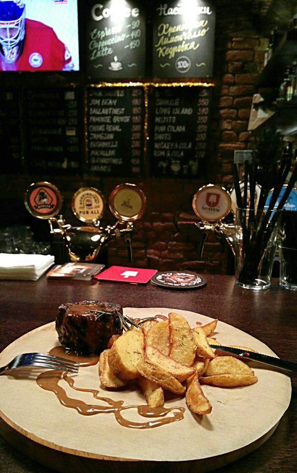 Бар представляет из себя небольшое, уютное помещение со столиками, большой стойкой и двумя плазмами, на которых можно смотреть футболы хоккеи,( на двух плазмах правда разные футболы смотреть нельзя, мы тут с корешком и барменшей хотели попытацца, но не срослось, хорошо не сломали гыы) , панорамными окнами на Пушкарскую.