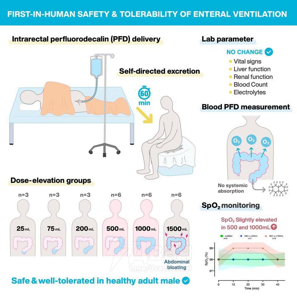 Разработка основана на наблюдениях за животными, которые способны поглощать кислород через кишечник — например, вьюны, черепахи и трепанги. Новый подход, называемый энтеральной вентиляцией, предполагает введение в кишечник жидкости, насыщенной кислородом. Она проходит через стенки кишечника и попадает в кровоток, минуя легкие.