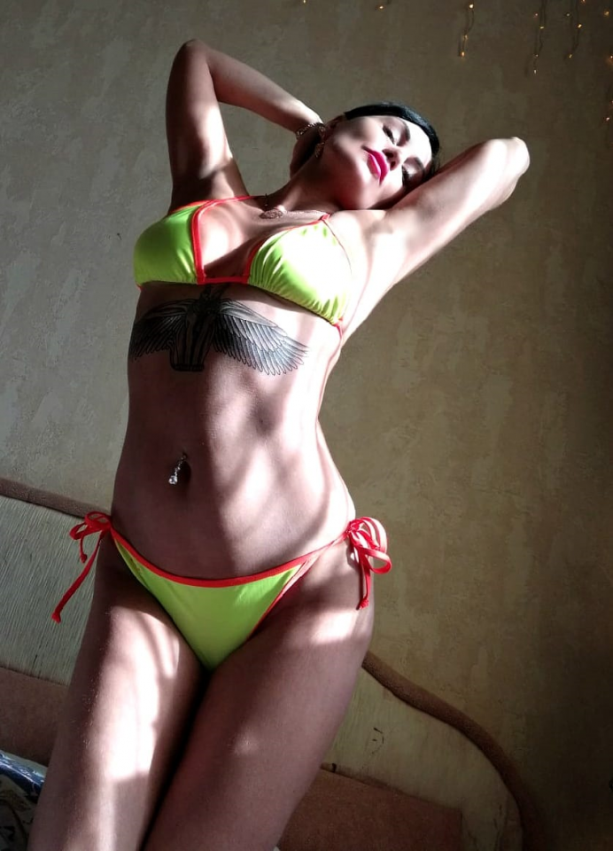 Фигура своеобразная - попы почти нет, маленькое пузико почти есть(я бы сказал что это больше в минус чем возраст, который и не особо большой). Но в принципе тоже вполне ок. В жизни показалась стройнее чем на фото. Сиськи для её возраста хорошо сохранились, хотя и самую малость подвисают.