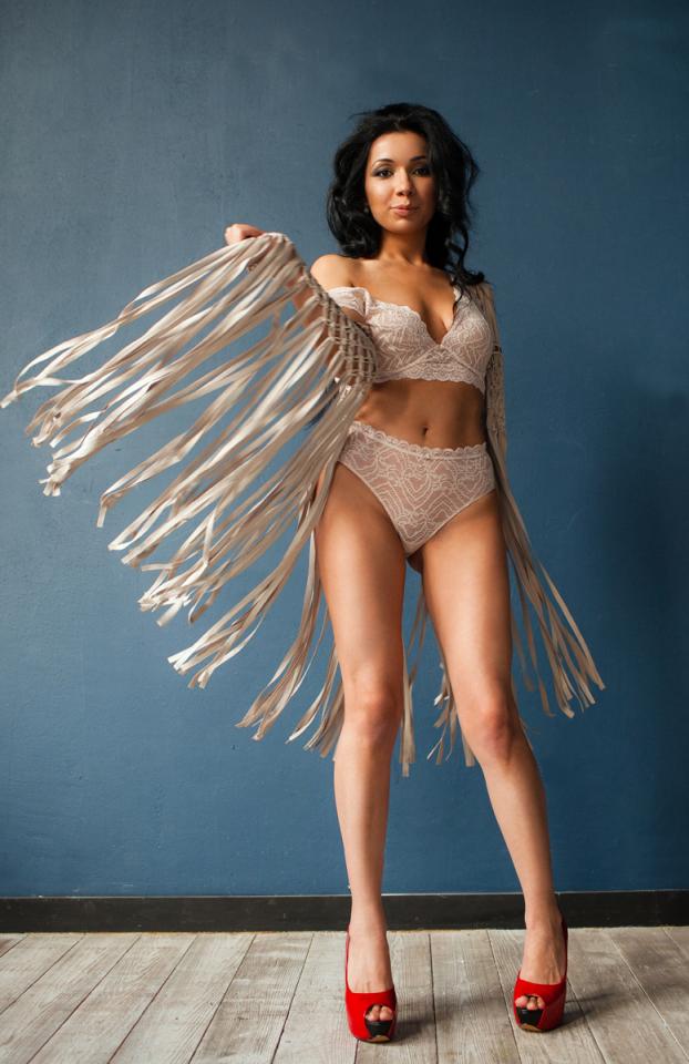 Красавица фея соответствует студийным фотографиям в этой теме. Стройная, шикарные черные густые волосы, красивые длинные стройные ноги, которые еще сильней подчеркивают туфли и короткая белая накидка (или черт знает как это называется).