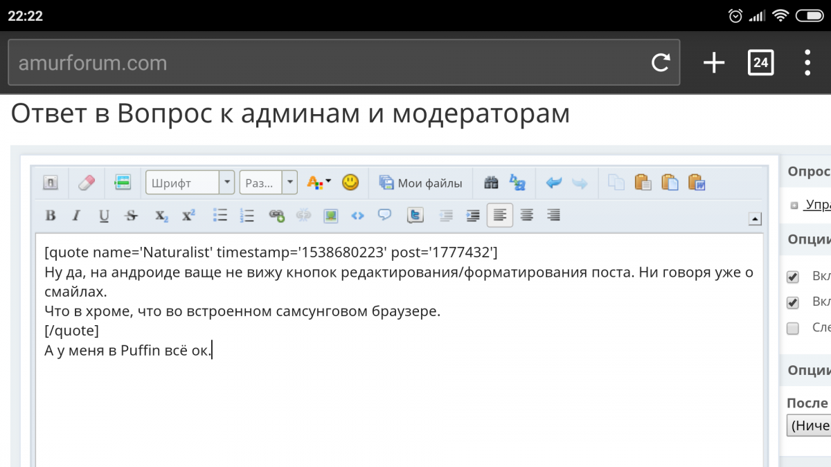 Ну да, на андроиде ваще не вижу кнопок редактирования/форматирования поста. Ни говоря уже о смайлах.