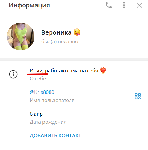 Там же указан её ТГ-контакт: @tvojdosug666