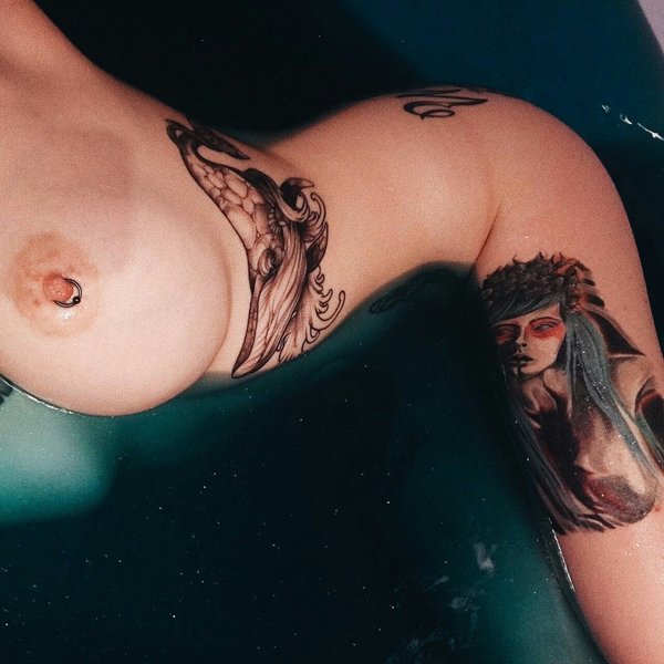 Фото ее, но сделаны давно - в реале татуированная деваха 175 см росту и полненькая ( мягко говоря)