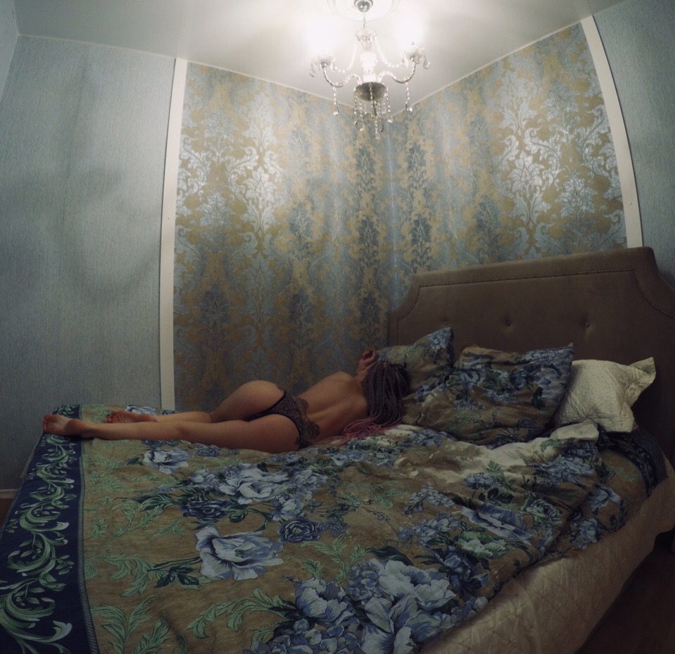 Вернувшись в комнату, застал Алену в спортивных трусиках и черном бюстагальтере на диванчике. Даа, забыл отметить, на стене над диваном намертво присобачен настенный тренажер-брусья пресс, как она потом мне сказала, принесла из дома. поскольку там есть другой тренажер, а этот лишний, знакомый какой-то ей его приспособил на стену, вот она и занимается тут, когда время есть...