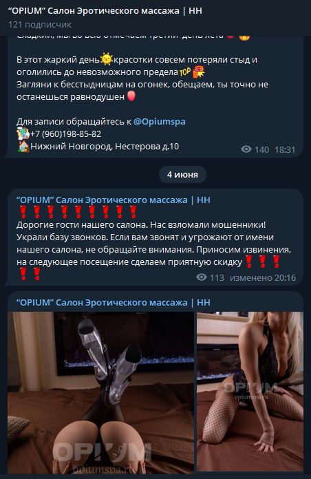 По факту это массажный салон Instinkt (TG аккаунты: @INSTINKT_Project ; @INSTINKT_25 ; @instinkt_project_nn ), Ул. Добролюбова, д. 4; Проспект Ильича, д. 25;