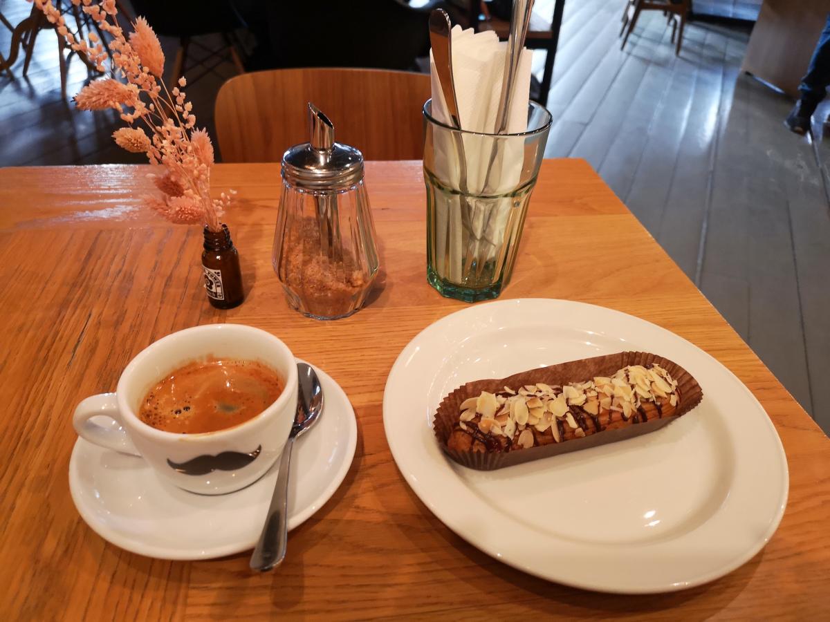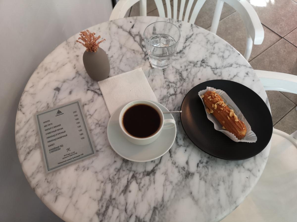 Взял американо и эклер со сгущенкой. Кофе, разумеется, был кислый, как все (почти) африканские сорта, но я был к этому готов. В принципе, кофе отличный, но любителям горького кофе с робустой может не понравиться.