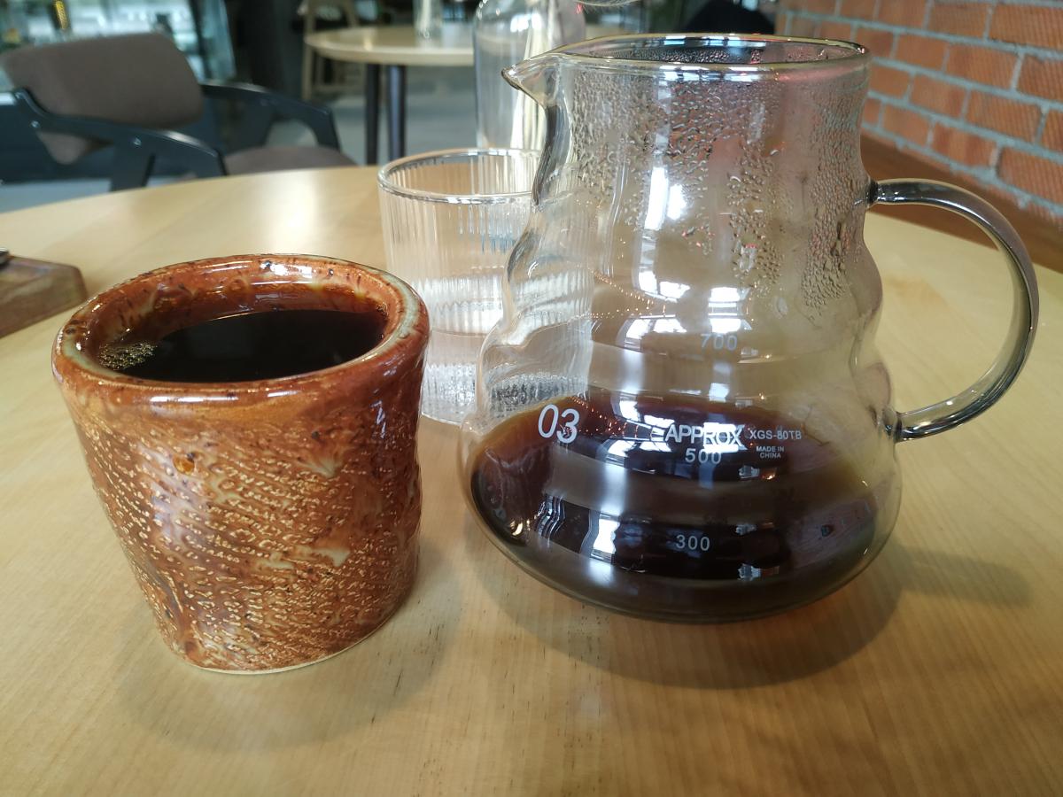 Воронки нет, фильтр была Бразилия от Submarine (220р/большая кружка), его и взял. Классическая классика, оттенки вкуса яблоко-шоколад, без изысков. Воду подают сразу.