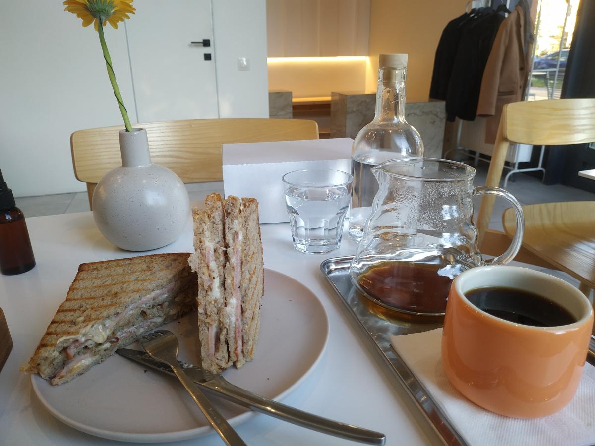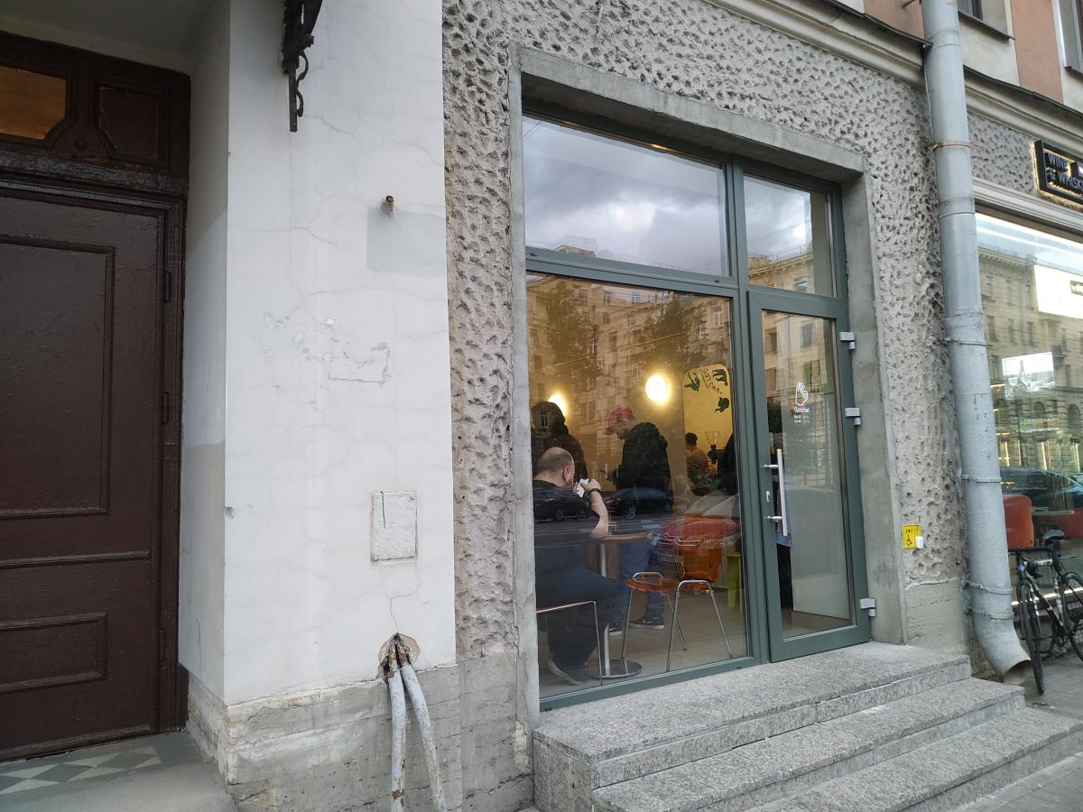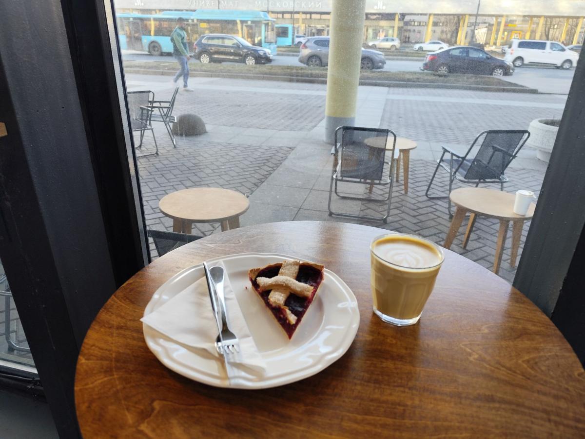 Кофейня на Петроге, на Пионерской ул 3, в 500 метрах от метро Спортивная. Пн-пт 08:30-21:00, сб-вс 09:30-21:00. Недавно заходил на кофе с завтраком.
