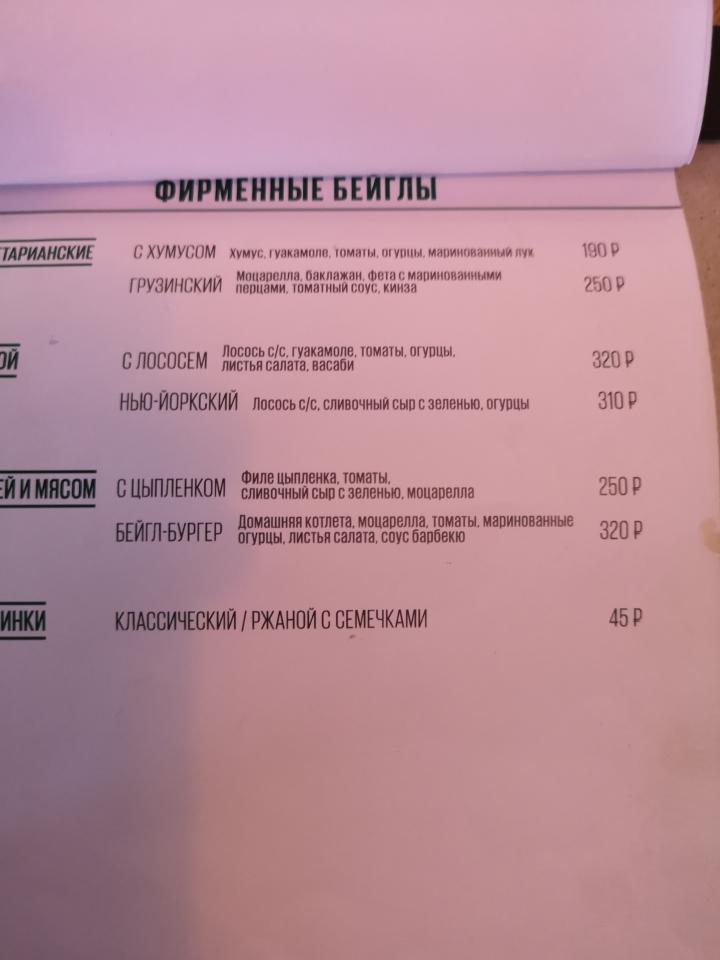 Фишка данного кафе - т.наз. "бейглы". Фактически это сэндвичи с разными начинками, приготовленные на основе своеобразных бубликов.