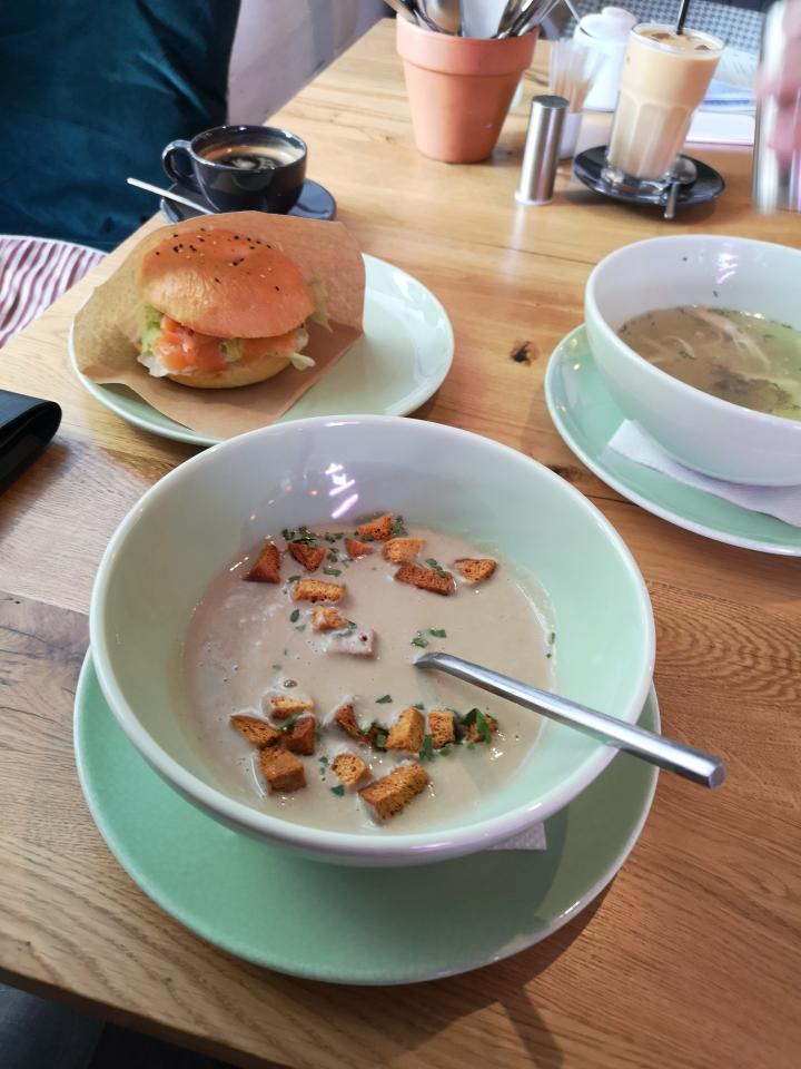 Это не совсем кофейня, поскольку предлагаются супы, завтраки, спиртные напитки и вообще можно поесть.