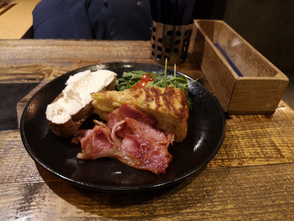 Заказал эспрессо и завтрак с омлетом и ветчиной. Эспрессо стоил 120 руб. Завтрак - 300 руб.