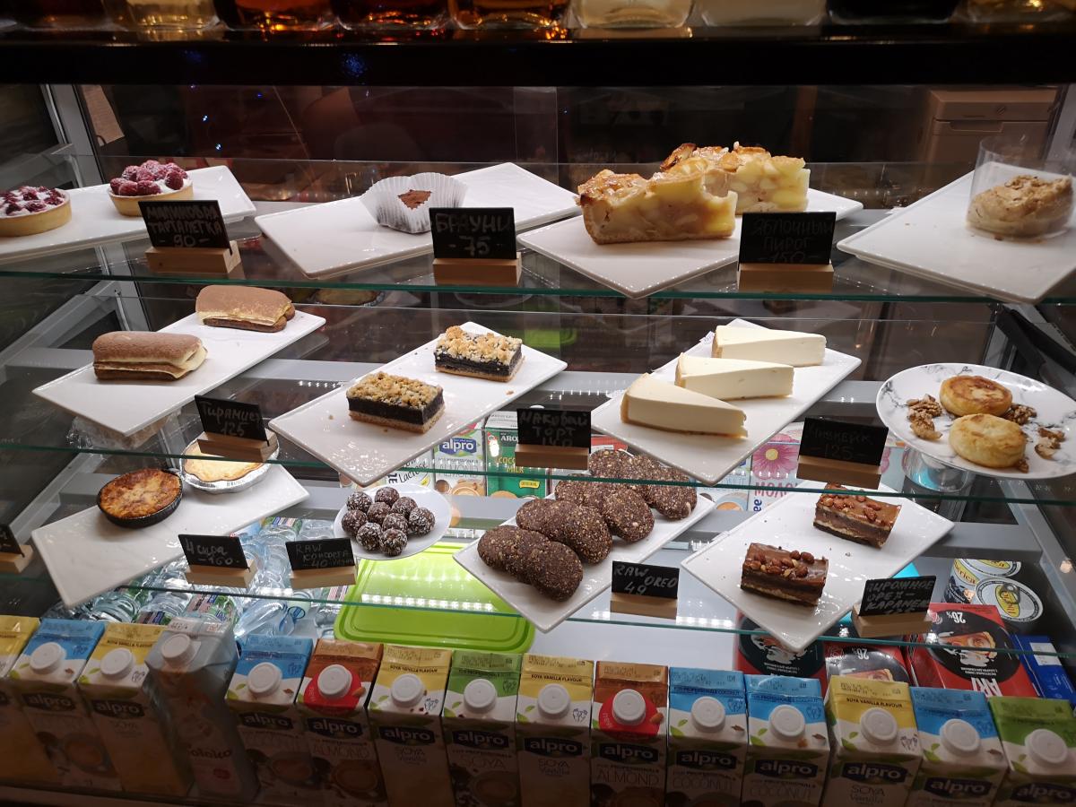 Из закусок представлены омлеты, бутерброды, брауни, печеньки и какие-то якобы полезные батончики. В отличие от Международного, нет вкусного мороженого. Взял брауни, плохого не скажу, но ничего особенного. Также брал печенье ручной работы - одно очень вкусное, другое на четверку.