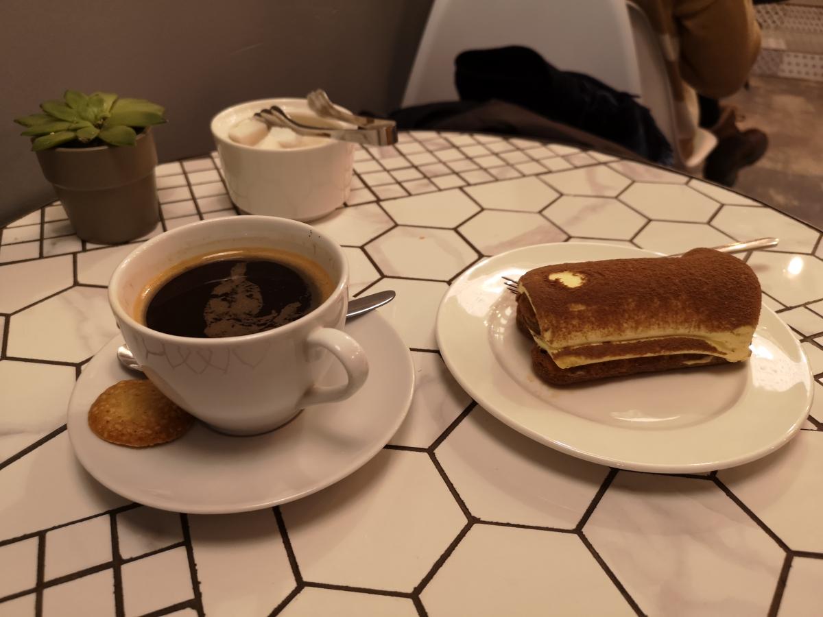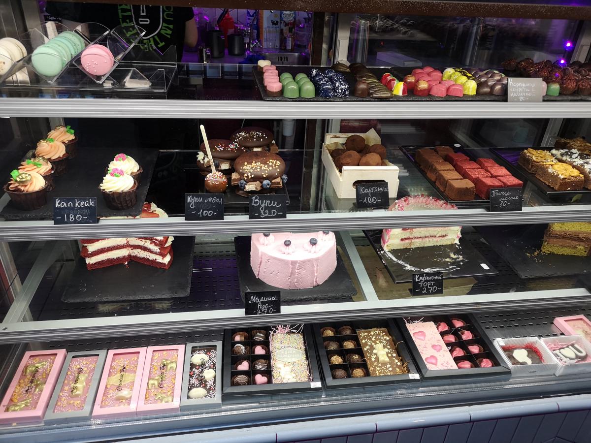 Взял тирамису - очень вкусно! Остальные десерты тоже неплохо выглядели. Попробовал конфету ручной работы - хорошо.