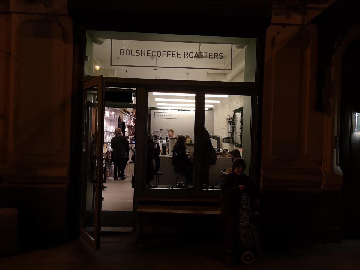 Посидев в Кофирсе, пошел себе в сторону остановки общественного транспорта... но внезапно (на Марата, 22) наткнулся на вывеску Bolshecoffee Roasters.
