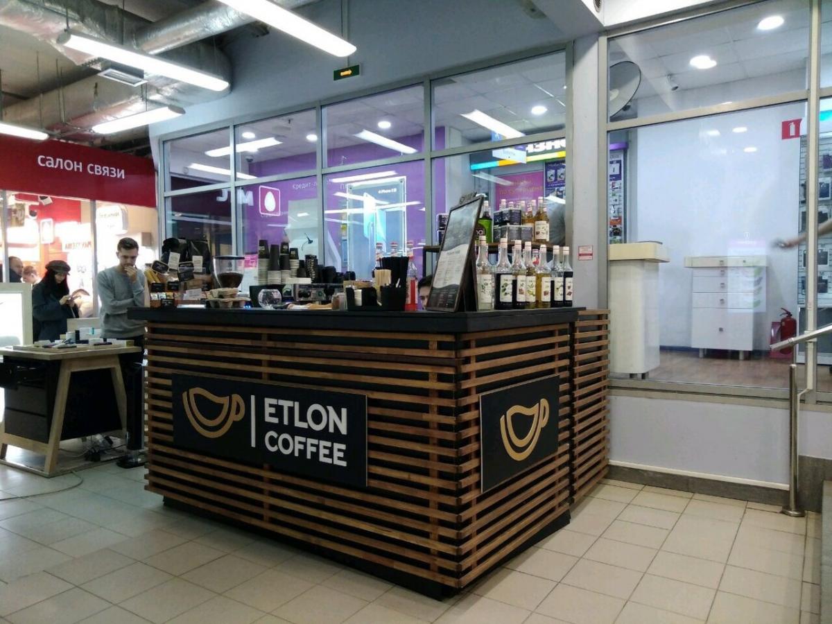 Небольшой лоток у входа в здание. Имеется стойка с 5 табуретками. Конечно, все заточено на вынос - бумажные стаканчики и т.п.