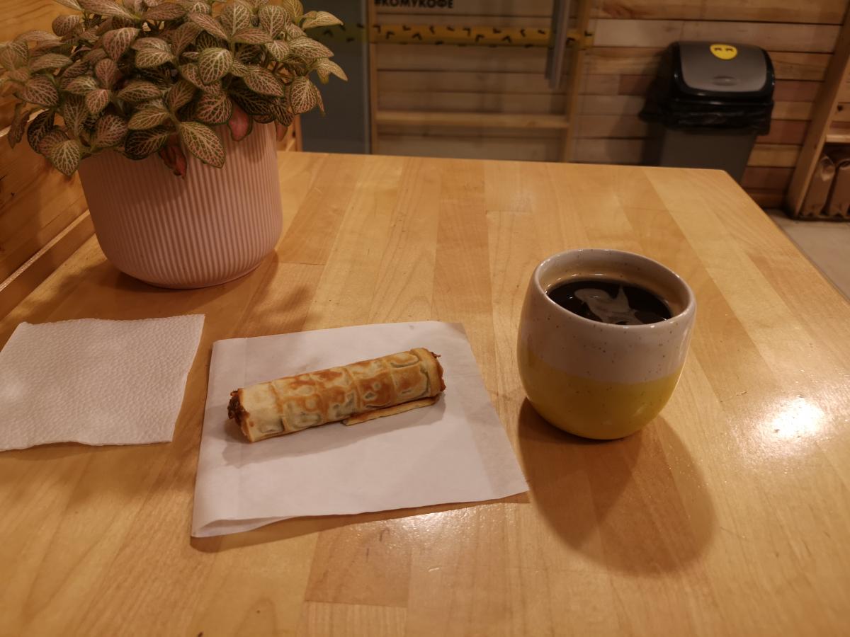 Взял, как обычно, на пробу американо, и еще трубочку со сгущенкой. В сумме - 110 руб.