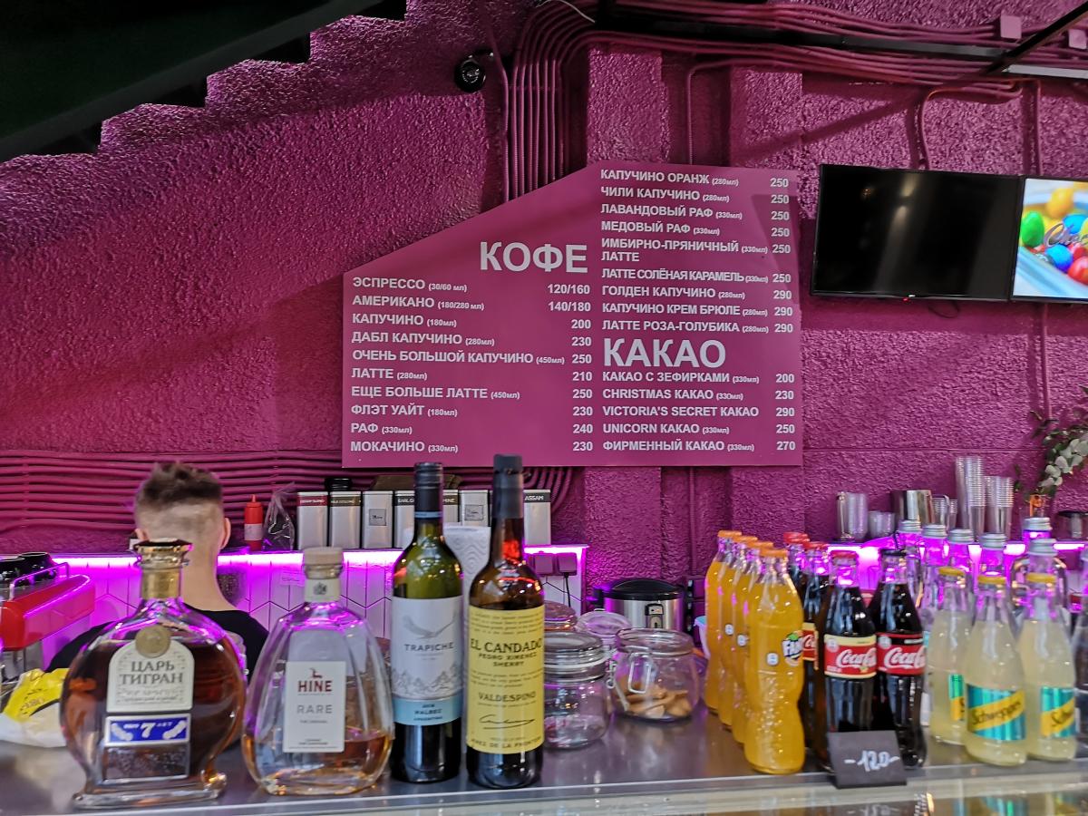 Кофе хороший, явно чистая арабика, много разных кофейных напитков (хотя бичерина не видел).