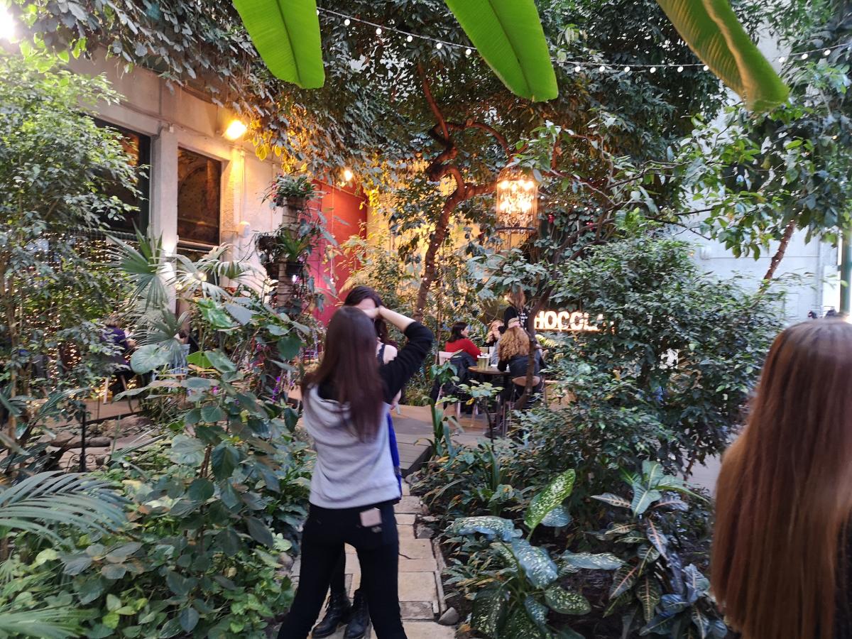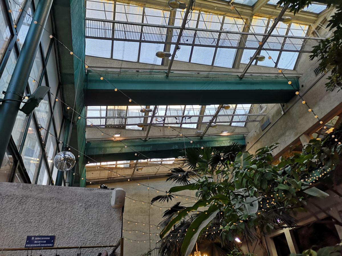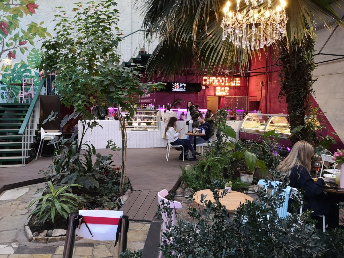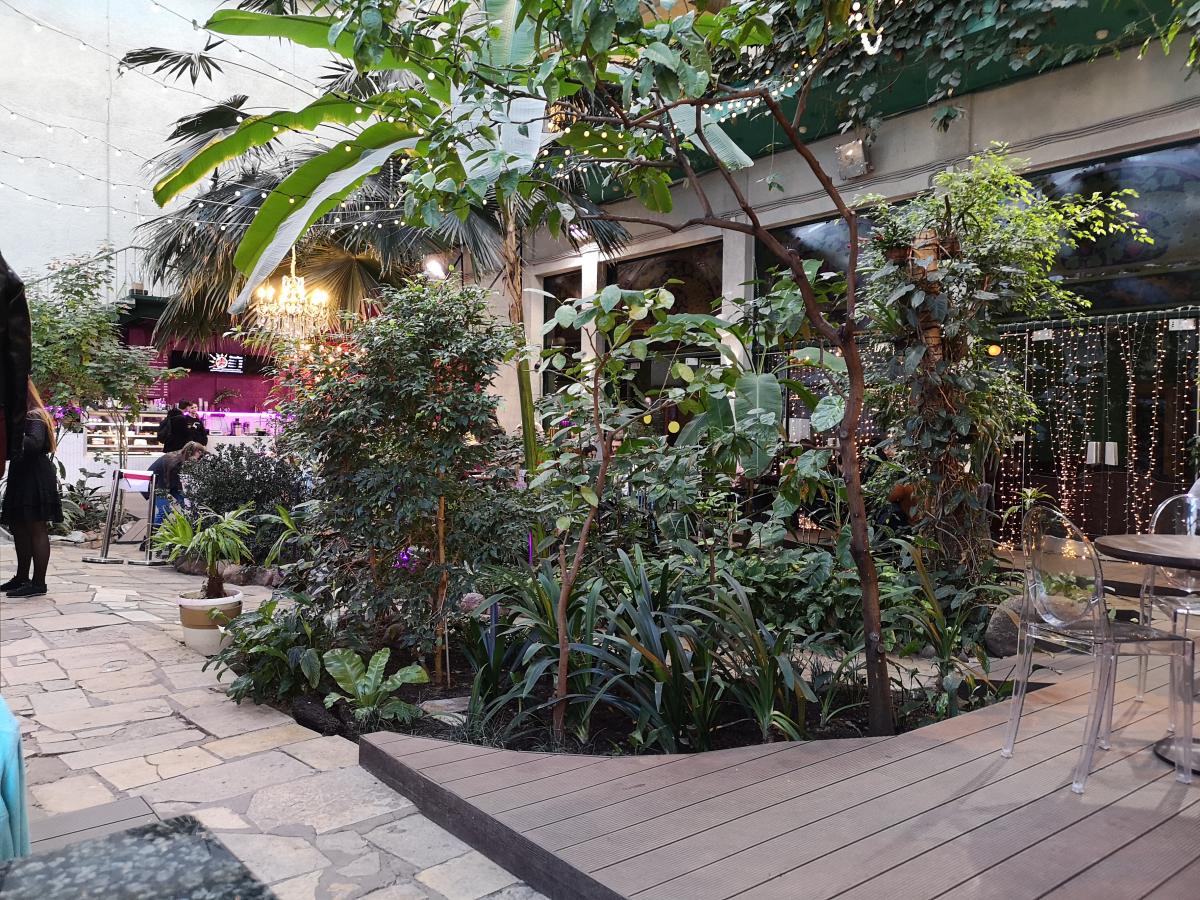 Обстановка благодаря зимнему саду довольно расслабляющая и романтическая, хотя некоторые посетительницы умудрились припереться с колясками.