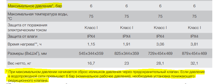 Ну смотри, раз в характеристиках указано до 5 атмосфер, то от этого и отталкиваемся. Смотрим инструкцию к другим водогреям Electrolux(например http://www.matrixnet...cfae814c991.pdf) на предмет того, что именно они подразумевают под максимальным давлением