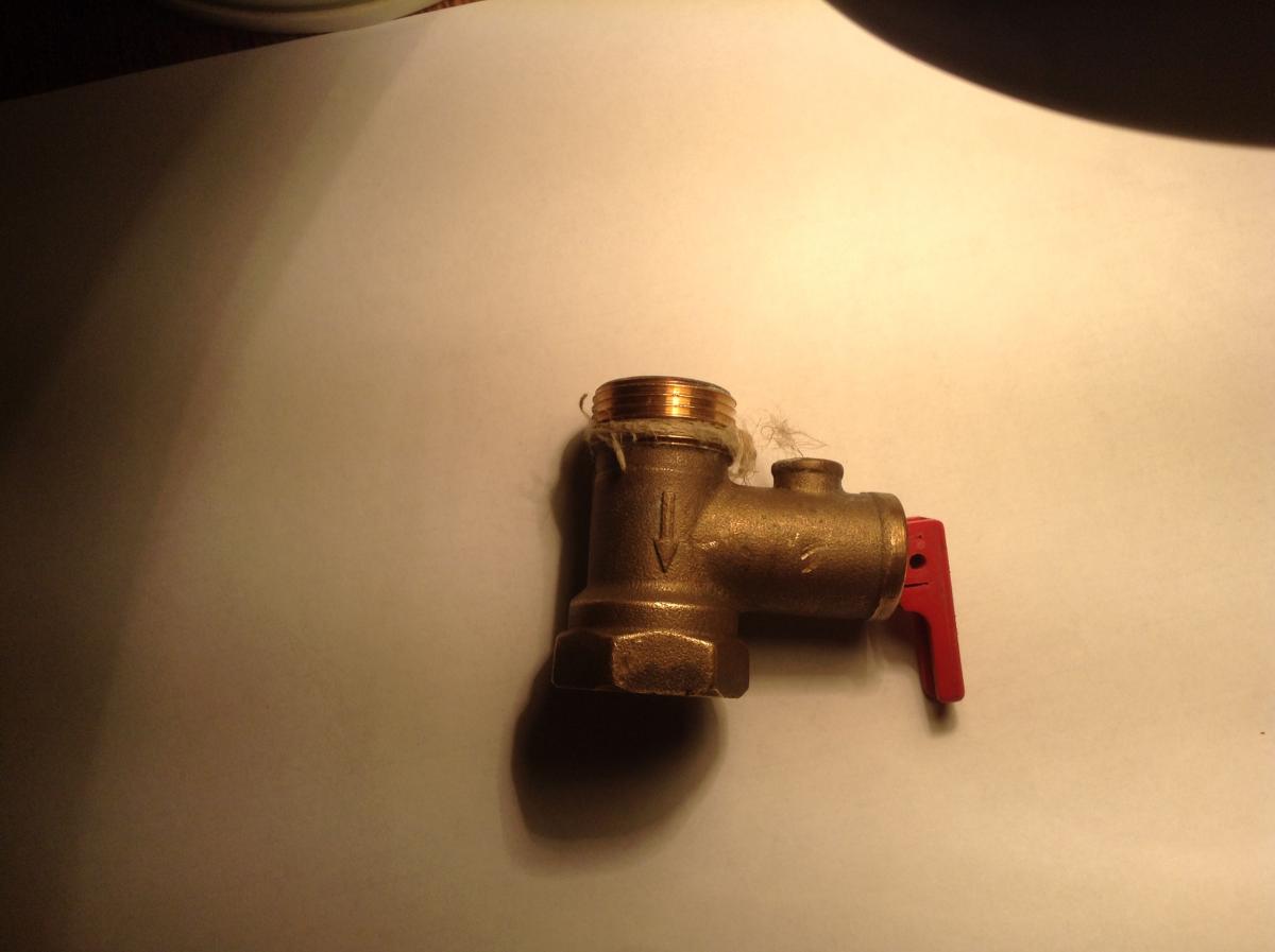 В инструкции на нагреватель написано, что нагреватели этой марки комплектуются предохранительными клапанами, обеспечивающими выдавливание в случае избыточного давления в резервуаре воду обратно в трубопровод холодной воды. Снятый же неисправный клапан похож на обычный возвратный, сбрасывающий избыточо тавящую воду через слив наружу.