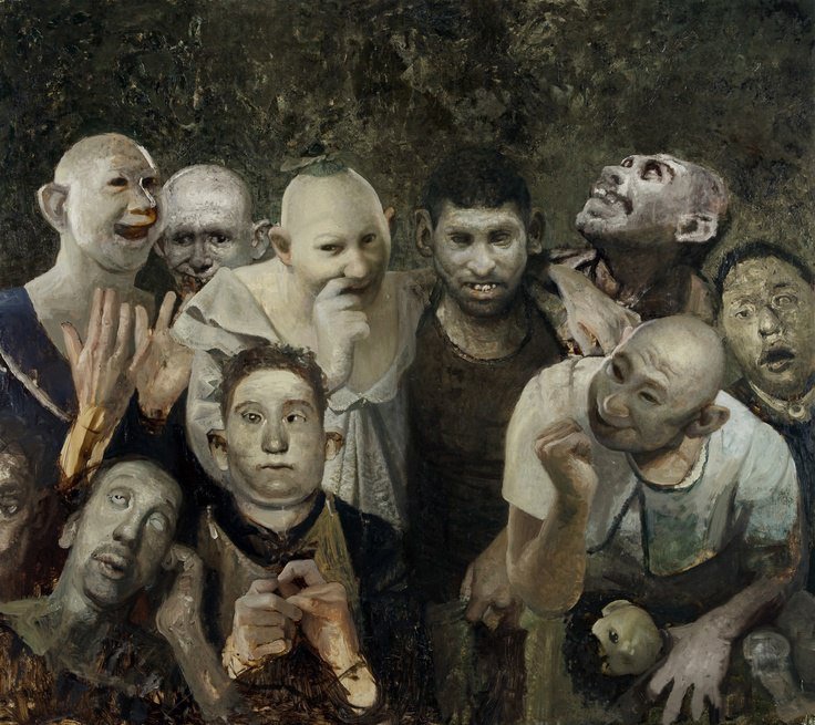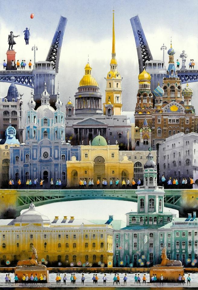 На картине изображены слева направо, на дальнем плане: Игорь Грабарь, Николай Рерих, Евгений Лансере, Иван Билибин, Александр Бенуа, Георгий Нарбут, Николай Милиоти, Константин Сомов, Мстислав Добужинский. На переднем плане Борис Кустодиев изобразил себя, а также Анну Остроумову-Лебедеву и Кузьму Петрова-Водкина.