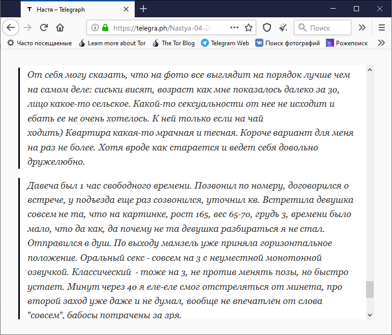- https://telegra.ph/Nastya-04-20 (сцылко робочее, но блякировано РосХамНацсёром) - сам аччот.