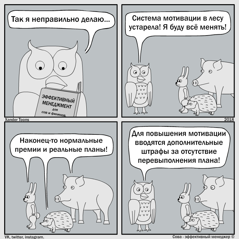 В том-то и дело, что реальная жизнь сложнее и одновременно проще абстрактных баек про эффективных менеджеров. Какой-нибудь бизнес чаще может пострадать из-за тривиального мудака или случайно взятого на работу незатейливого жулика.