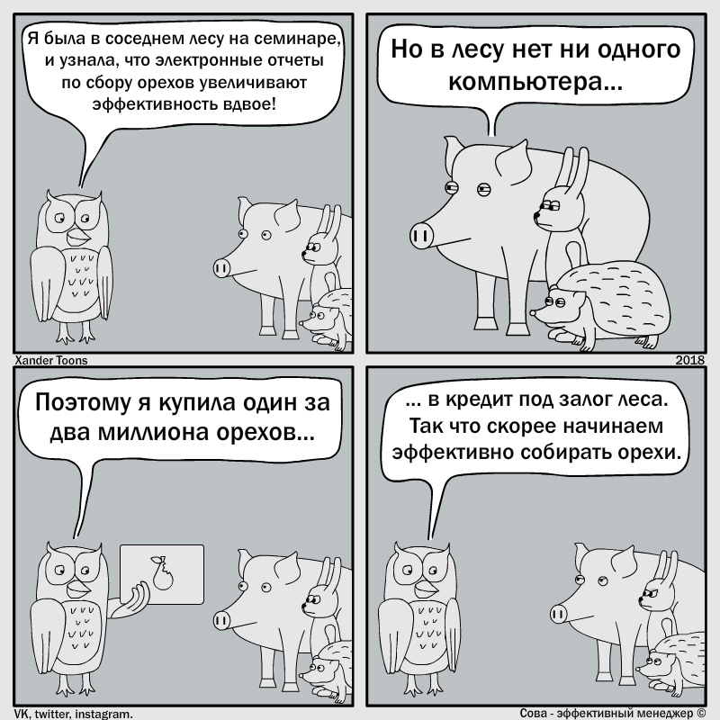 2. Абсолютизация криво переведенных с английского учебников по бизнесу, когда модные бизнес-решения внедряются в каждой фирме, не разбирая, нужно это или нет.