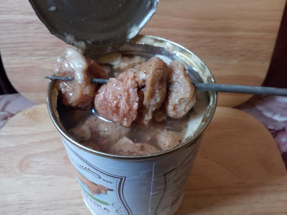 Если не брать в расчёт вкус, а он у соевого "мяса" действительно специфический, то, не будь столько жидкости, продукт мог быть вполне ничего, т.к. никто не мешает сделать под него свой соус. Здесь же видно, как кусочки размокли, да ещё плавают в бульоне.