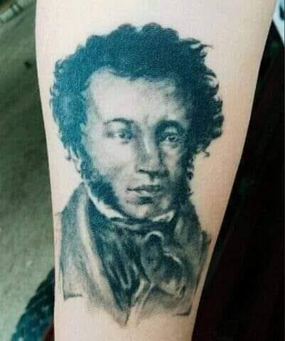 Ждала своей очереди в МФЦ, сняла пальто. Рукава у кофты по локоть, видно татуировку с Пушкиным.