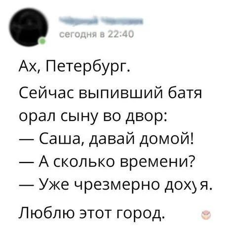 На ежедневном кормлении бездомных котеек встретил я вчера знакомую старушку-ленинградку, бывшую филологичку. Ну, подношения свои кошарям раздали, сами стоим возле дома, беседуем о литературе, ждём, когда можно будет посуду забрать, а шерстяные, значит, радостно пируют себе. Как вдруг на втором этаже распахивается окно, высовывается испитая хамская рожа местной хулиганки-алкоголички и начинает утробно орать, чтобы мы убирались отсюда, иначе она наших котов отравит. И тут моя собеседница вдруг дивно преображается, аки град Китеж, и яростно, громко рубит: