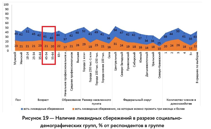 Если исследование проводилось в 2023 году, то группа с самым низким наличием сбережений - от 1959 до 1978 годов рождения, что почти совпадает с границами "сломанного поколения" (разница объясняется тем, что социологи нарезали грубо периодами по 10 лет).