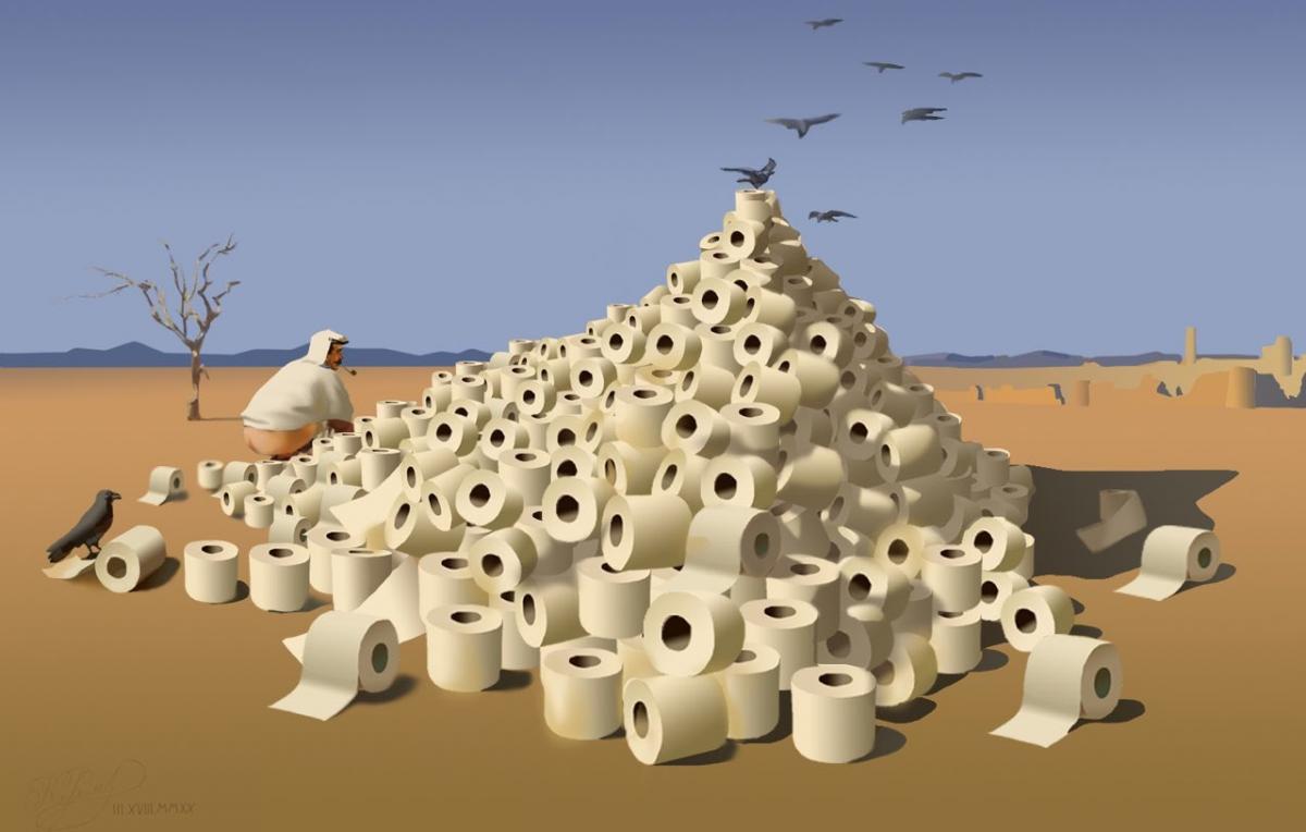 Уже видно, что магазины предпринимают для успокоения граждан, психологический прием, вошедшего на входе , встречает паллет с туалетной бумагой, вселяя чувство стабильности и понимание, что небо не упало на землю и жизнь продолжается. ( В "Сезоне", на Пионерке, сегодня стояло 5, не на входе , правда, а дальше. ) Прикольно, конечно, но таким образом идет вербальный посыл - " не ссыте!"