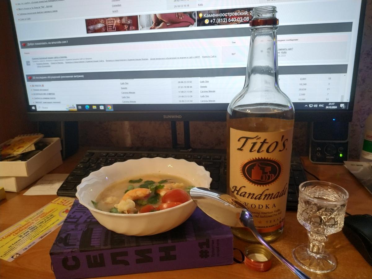 Что же испил под свои невообразимые том-ямоваые труды. Стояла с июня. Tito's Handmade vodka, берёная в "Напитках мира" за 1900р/0.7. Это не подарочный экземпляр, водка как она есть. Скажем так - бессмысленные понты. Если ты пацан 20 лет, и хочешь выебнуться, поставив вот это техасское из Остина (ебать-колотить!) на стол - то да. Если проделать такой фокус среди опытных алкоголиков - посмеются про себя и скажут, ебать ты молодец, уважуха на 50 лет фперёд... Оно конечно USA, Остин, Техас. Мягкая. Но. ------ Это ЕРУНДИСТИКА. Это дурость. Всё равно что выбрать для своего наслаждения только пизду, минуя очо и горло шлюхи! Знамо, что некоторые камрады, не могут по своим соображениям отделать шлюху до потери её сознания. Так есть же и другие методы, например порка.......
