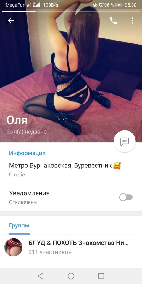 Анкета: обитает в телеграмовской группе: https://t.me/Vzroslyy152, и в VK: https://vk.com/olja_olja2(пять)