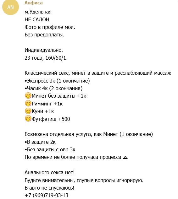 Анфиса, ТГ @anfissa8 т. 969-719-03-13; ранее м. Приморская. 964-371-05-42. Она же Ульяна, 900-637-30-92 и Алиса с кучей телефонов