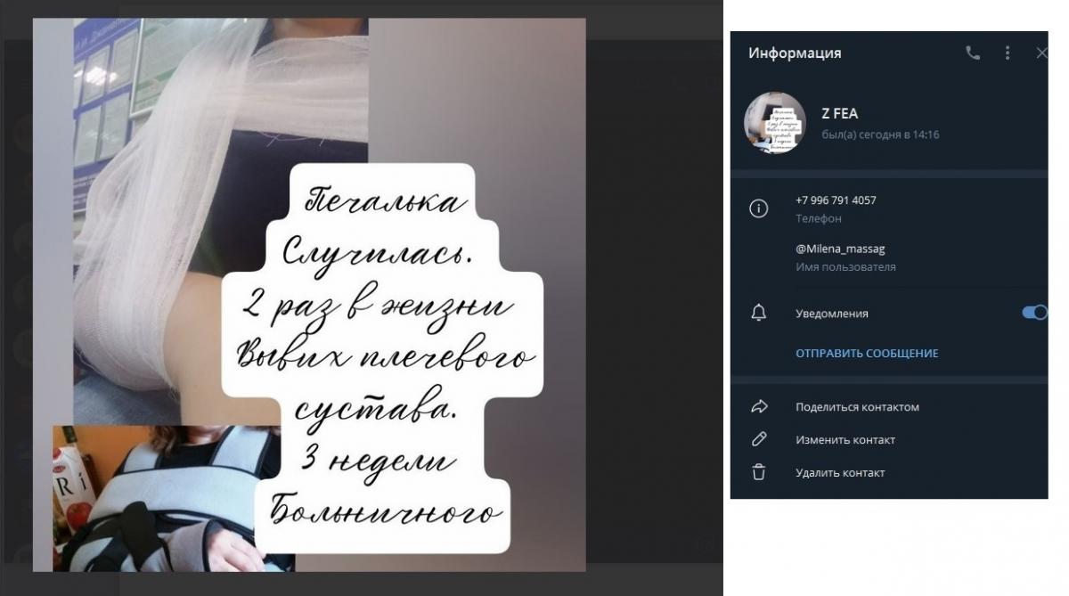 В телеге у неё сейчас написано, что у неё вывих плечевого сустава и она на больничном 3 недели.