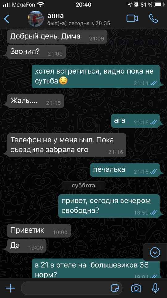 вечером скину, но вот фото её аккаунта слегка дают призадуматься, просто именно с ней пытаюсь встретиться уже давно, ранний её аккаунт был удалён, недавно появился этот, со схожими фотографиями.