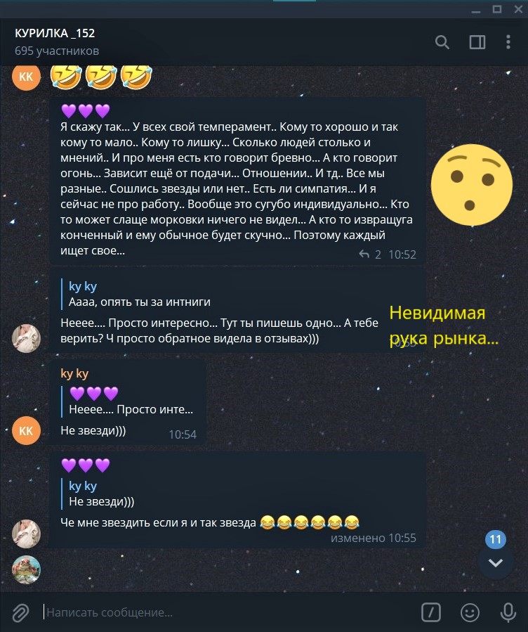 инди), ну или принятому ценнику в конторе при котором что старая, страшная и ленивая, что симпотная, молодая и трудолюбивая могут пойти по одной цене. Я был бы даже рад, если бы в Нижнем открылась контора с ценником выше 3к и под 5к иногда себя побаловать, если бы там были старательные и умелые молодые красотки в цивильных условиях. У нас, к сожалению, все что ты получишь выше 3к - это завышенное ЧСВ, а по телу и условиям будет все тоже самое, что другие предоставляют за 2-3к. Поэтому все эти Киры, Капризы и Кристины ставшие Миленами из телеги не стоят тех денег что хотят, это просто развод лохов ленивыми, капризными тётками. Или Адель была вменяемая девочка, хоть и безолаберная, но стала расти корона и вслед за ней начал расти ценник. Стала ли Адель за 3,5к лучше той Адели, что брала 2,5к? Вопрос риторический. И если среди этого появится фея, которая хочет пусть 3к и при этом у неё нет ЧСВ, она дружелюбная, старательная, стремящаяся угодить, следить за собой, всегда с чистым бельём, качественными гондонами, помывочными средствами и так далее все перечислять не буду - есть все основания её защищать и поощрять её устремления, выказывая понимание, что конечно у неё есть траты и она молодец, что тратится. Это поощрение повышения качества услуг. А с подходом "даже 2к это слишком дорого потому что я меньше в час зарабатываю, поэтому все её траты не имеют значения" можно лишь простимулировать забить на траты, раз они не имеют значения. Если и не совсем забить, то точно особо не стараться. Так и отпадает зависимость цены от качества, и цена привязывается к ЧСВ, спросу от объёмов рекламы или к тому сколько другие берут.