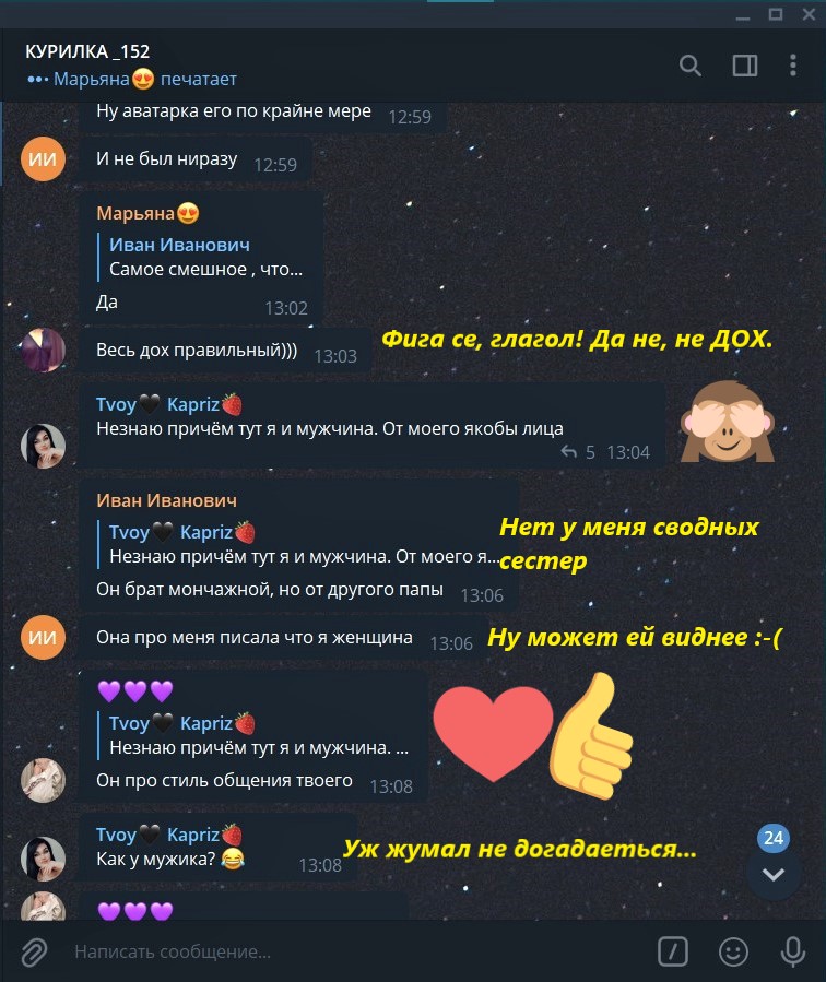 Короче, "сфера досуга" варится в собственном соку и благодаря низкому качеству "кадров" сок этот в основном ядовитый. Отчеты на форуме в последнее время больше напоминают рефлексию или информационный билютень о том, куда лучше не соваться